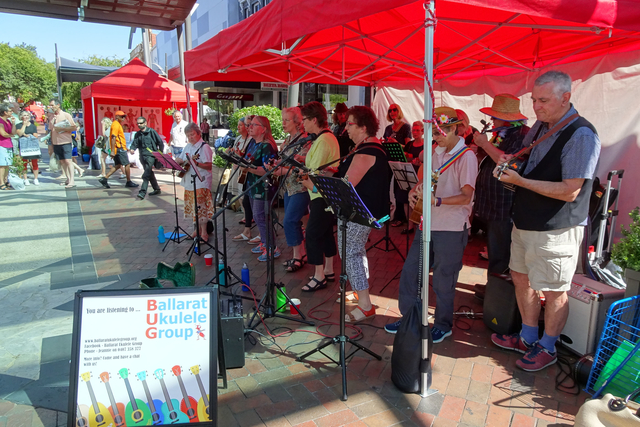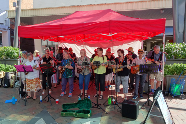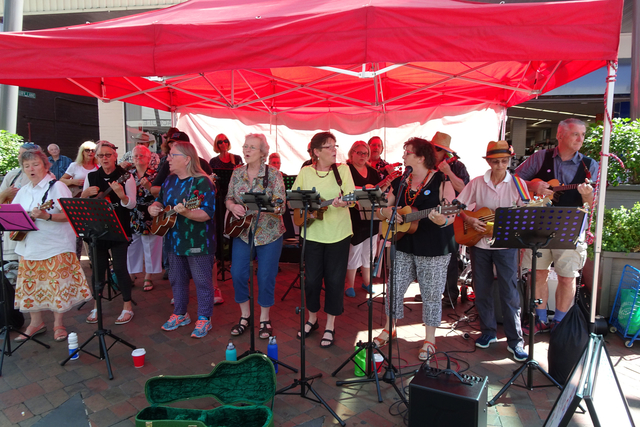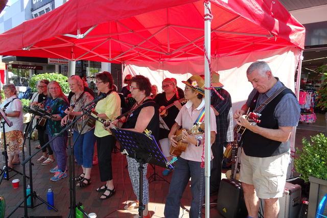Playing in the Bridge Mall during the 1st Saturday of the month's farmers market. Happy audience, had fun dancing, and happy stallholders enjoying the sound.